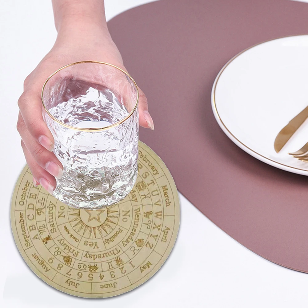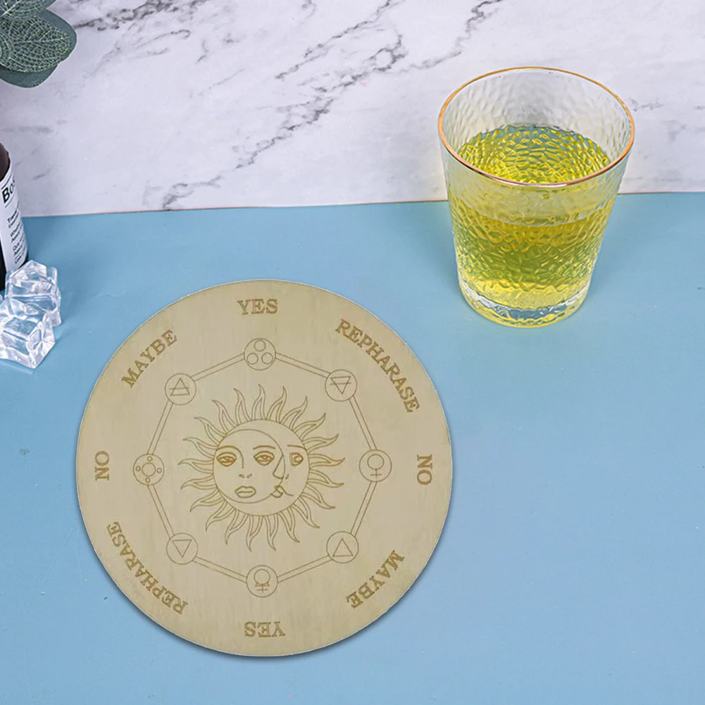 Wooden Divination Pendulum Board with Stars Moon Carved Coasters Astrology Game Playing Plate Metaphysical Healing Meditation Boards Altar Ornaments Decoration